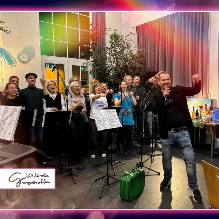 Natürlich haben wir in unseren Chorproben immer viel Spaß. Wenn ein Auftritt näher rückt, stecken wir unser ganzes Herzblut hinein, schließlich wollen wir unser Publikum musikalisch berühren. Mitsingen ist ausdrücklich erwünscht 🙂